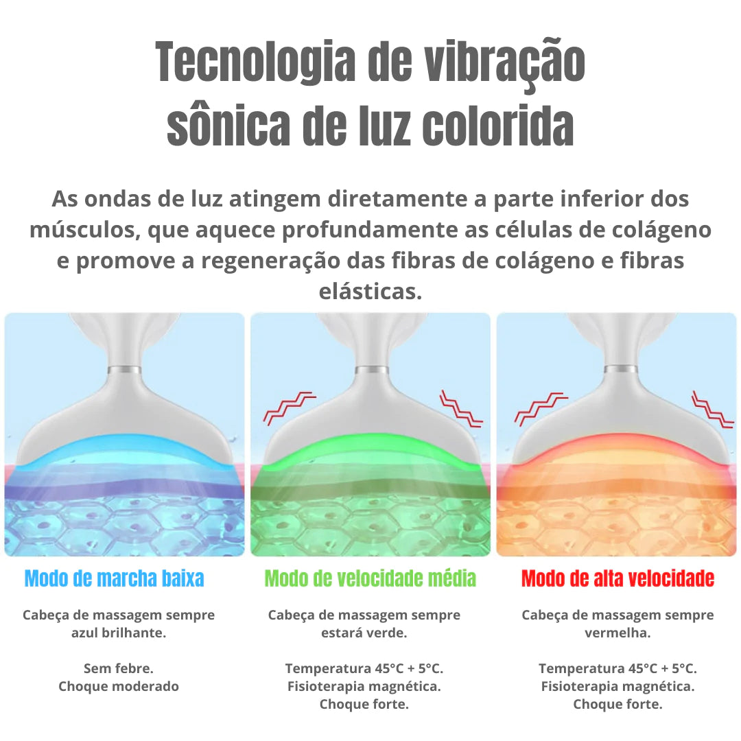 - Luz Vermelha: penetra profundamente na pele até a parte mais inferior, revitaliza a atividade do colágeno, melhora a coloração, reduz rugas e linhas de expressãmassageador facial 001o.